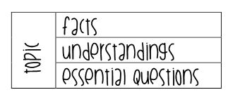 Now it’s your turn to practice. Pick a topic. This could be from grade level content, academic standards or a more ordinary, lower-level topic. Analyze the topic by identifying the embedded facts, essential questions (with the associated levels of thinking) and the essential understandings (“Students will understand that…”). You can use a simple template, such as below, to guide your work.