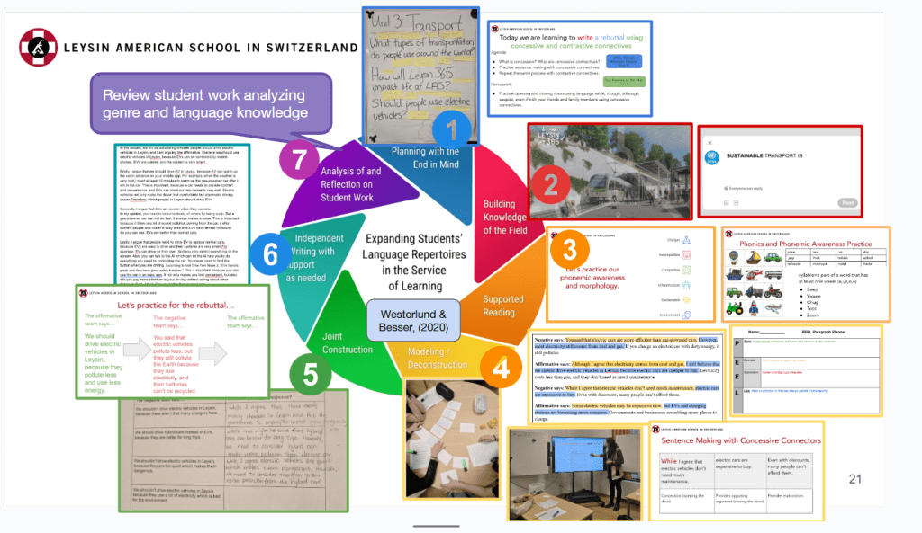 From there, just like Mari did, we design activities to engage students with meaning-focused activities, relevant to their lives (use of electric vehicles in Lesin, the town where they live and go to school), working with authentic mentor texts connected to authentic learning goals, and creating activities where language is placed in the context of text through Deconstruction and Joint Construction as I illustrated above.